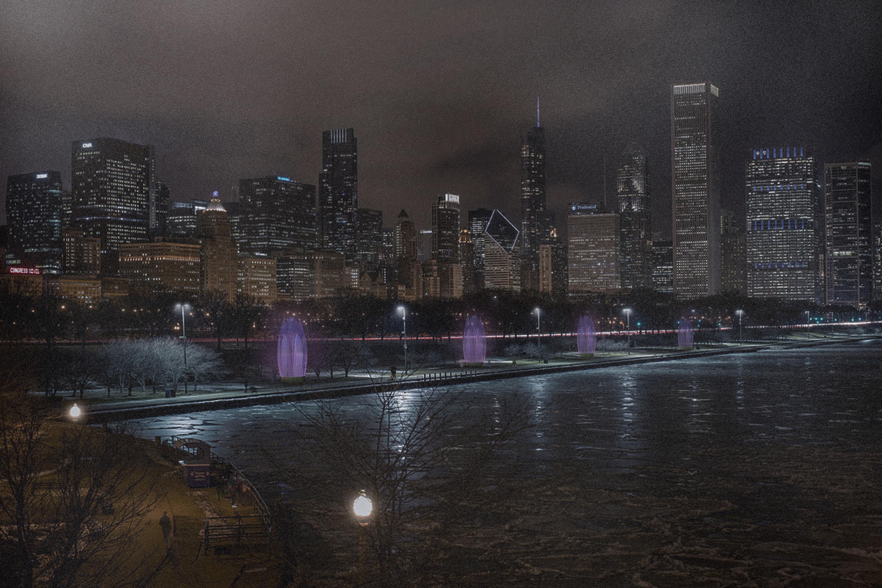 This allows the kiosk to remain an iconic attraction through the colder winter months, as its sculptural form will be illuminated from within transforming it into an attractive marker within the lakefront landscape. It will become a wayfinding point that will help visitors to navigate through the park or along the waterfront at night and in winter. Thus, the kiosk will be both a social gathering place when open and an intriguing piece of sculpture during winter.