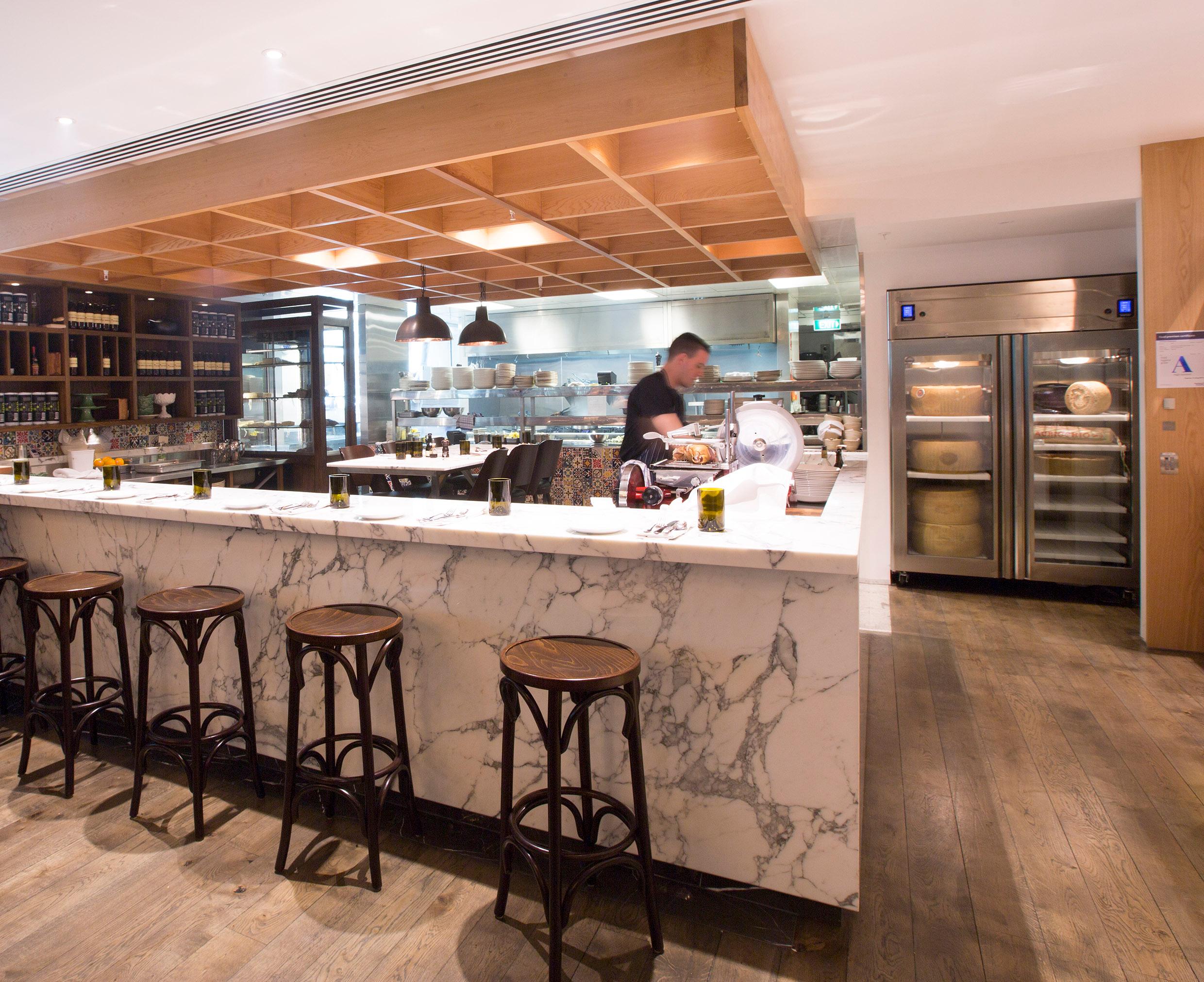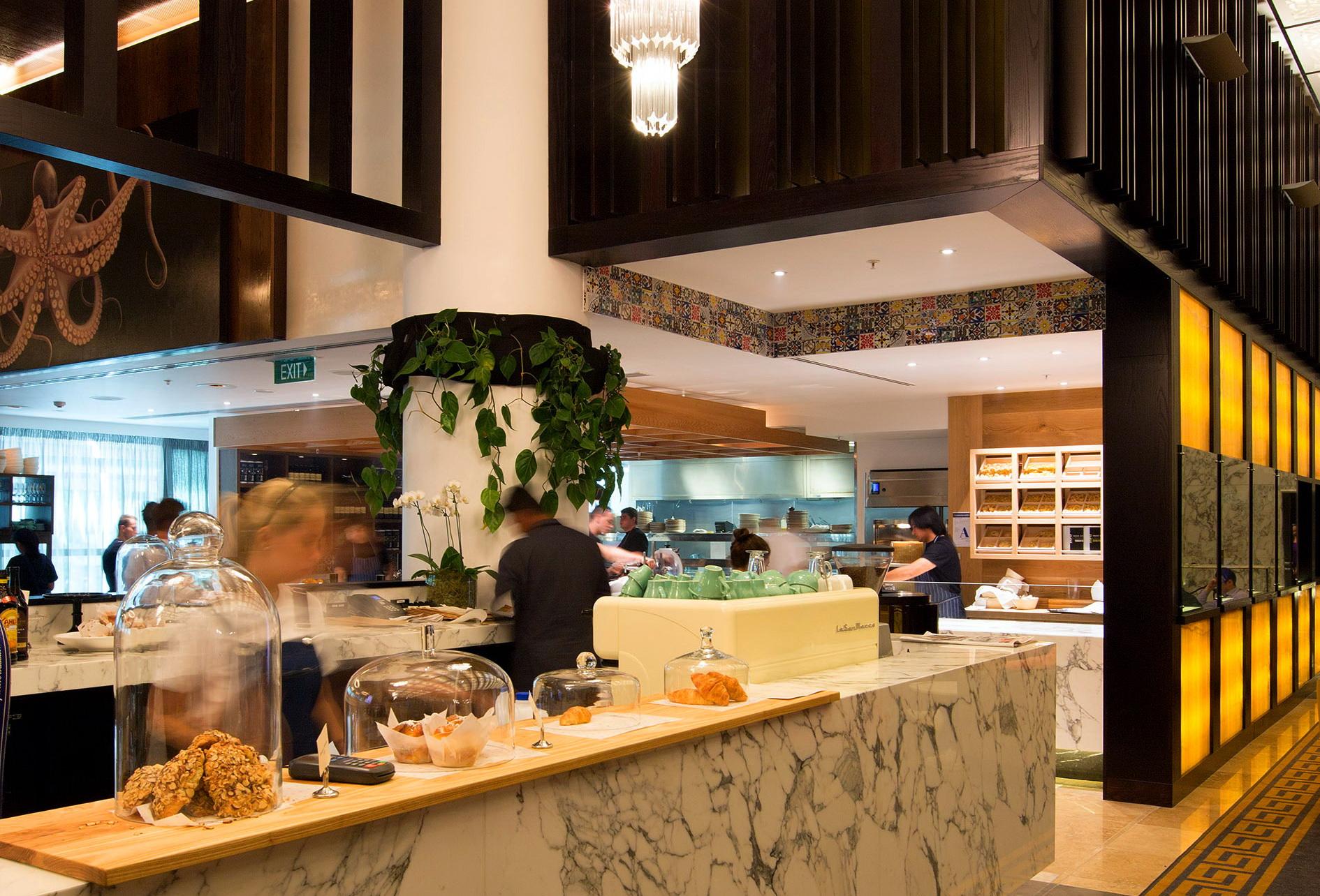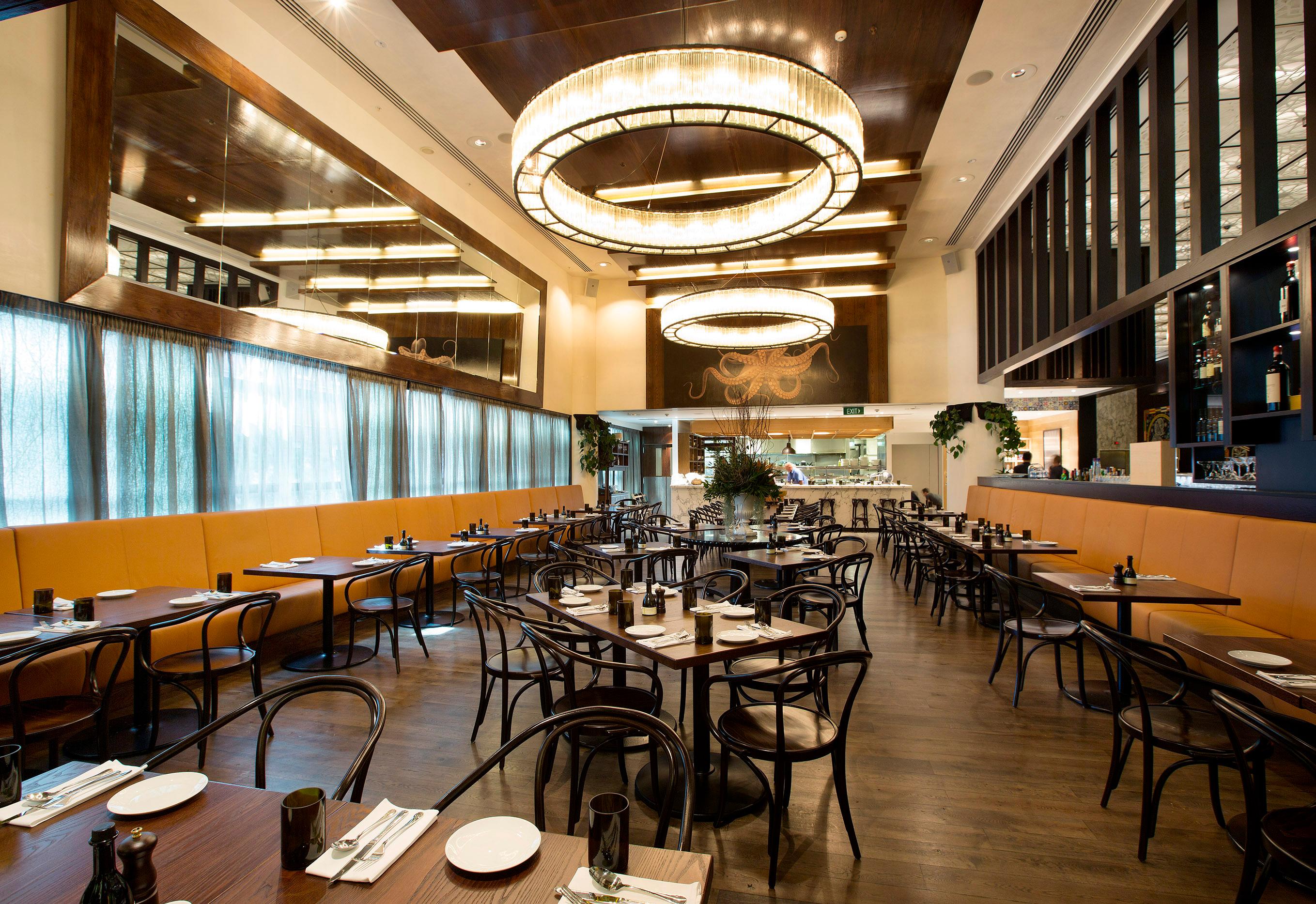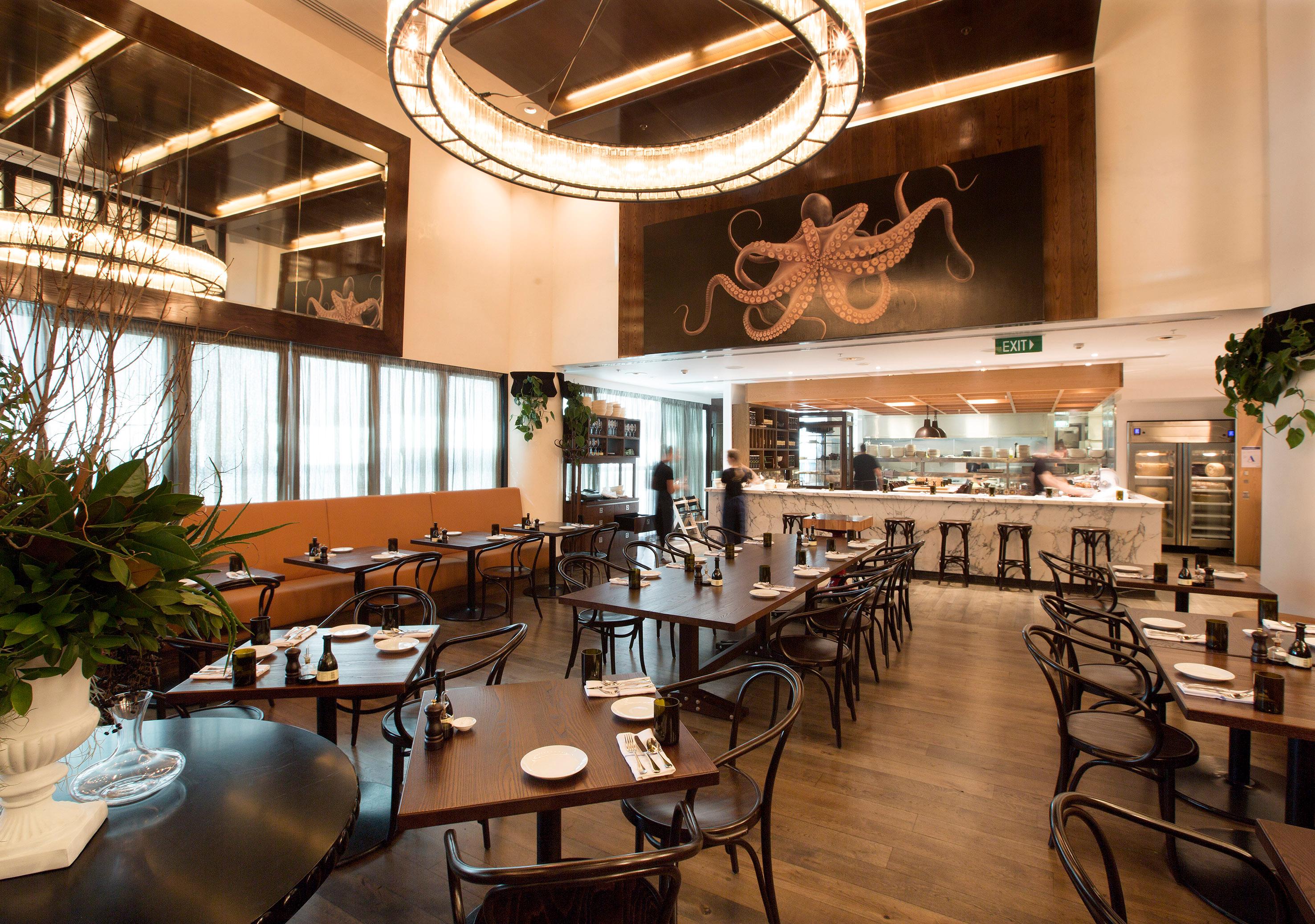 The project comprises of a new lobby bar and seating area in The Grand that opens up and engages with the lobby and the restaurant simultaneously. A new chefs bar and pasta kitchen area were added to the restaurant with new materials and finishes to complement the existing dining spaces.