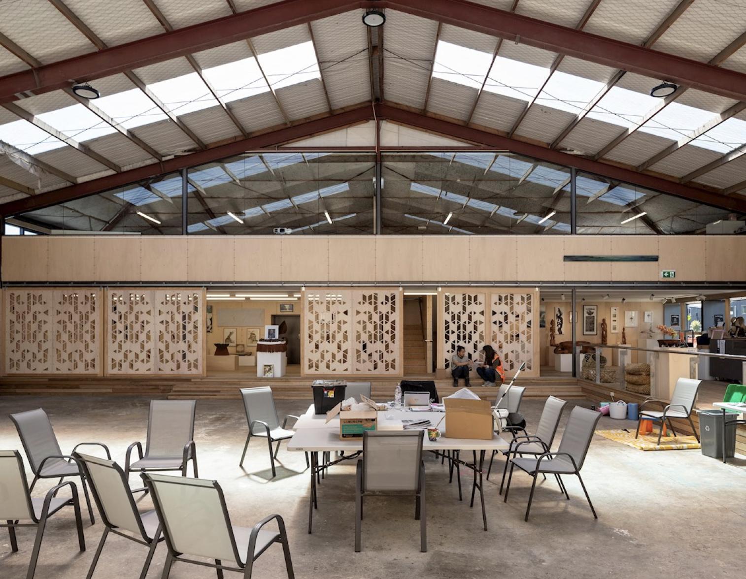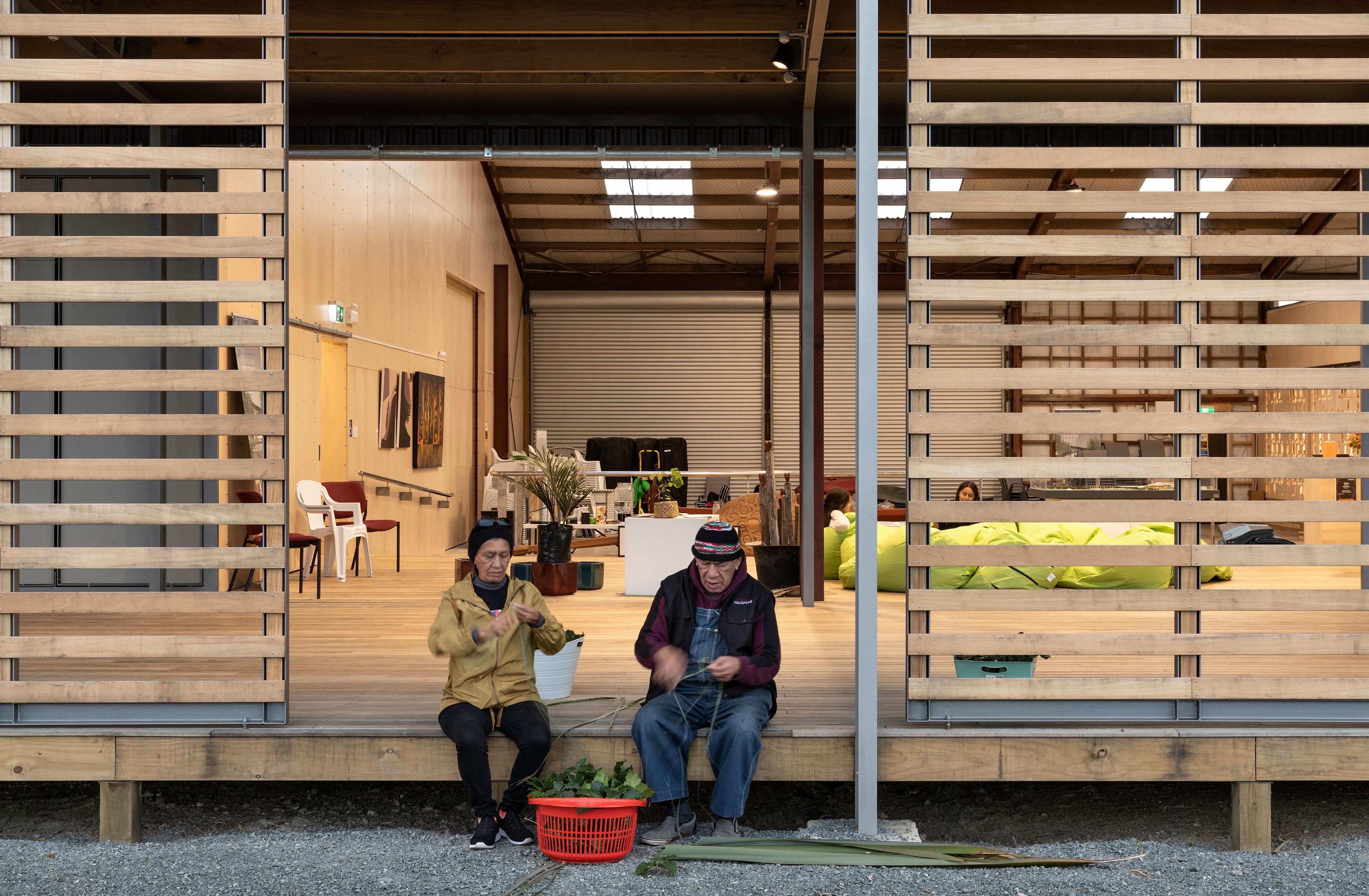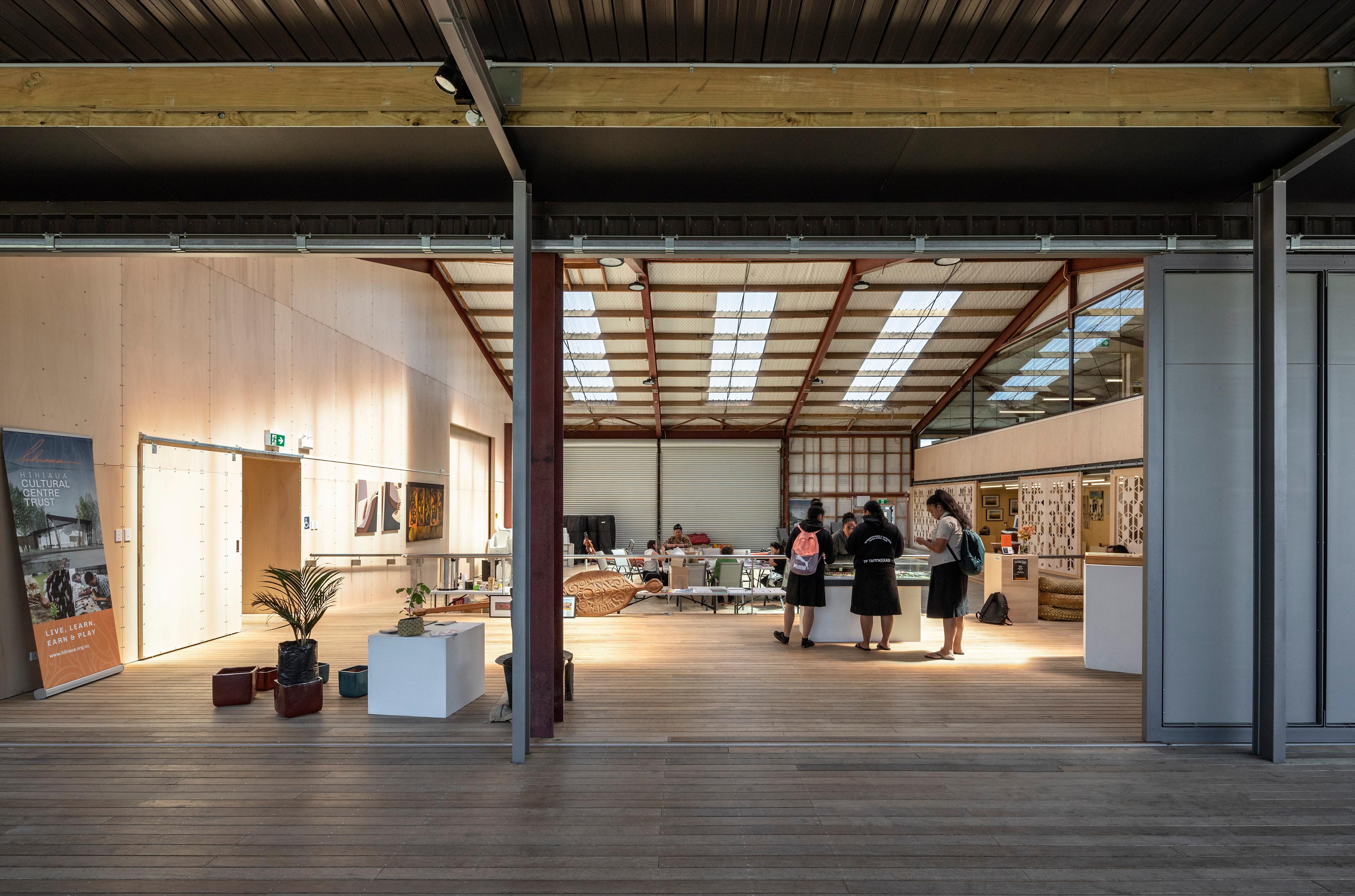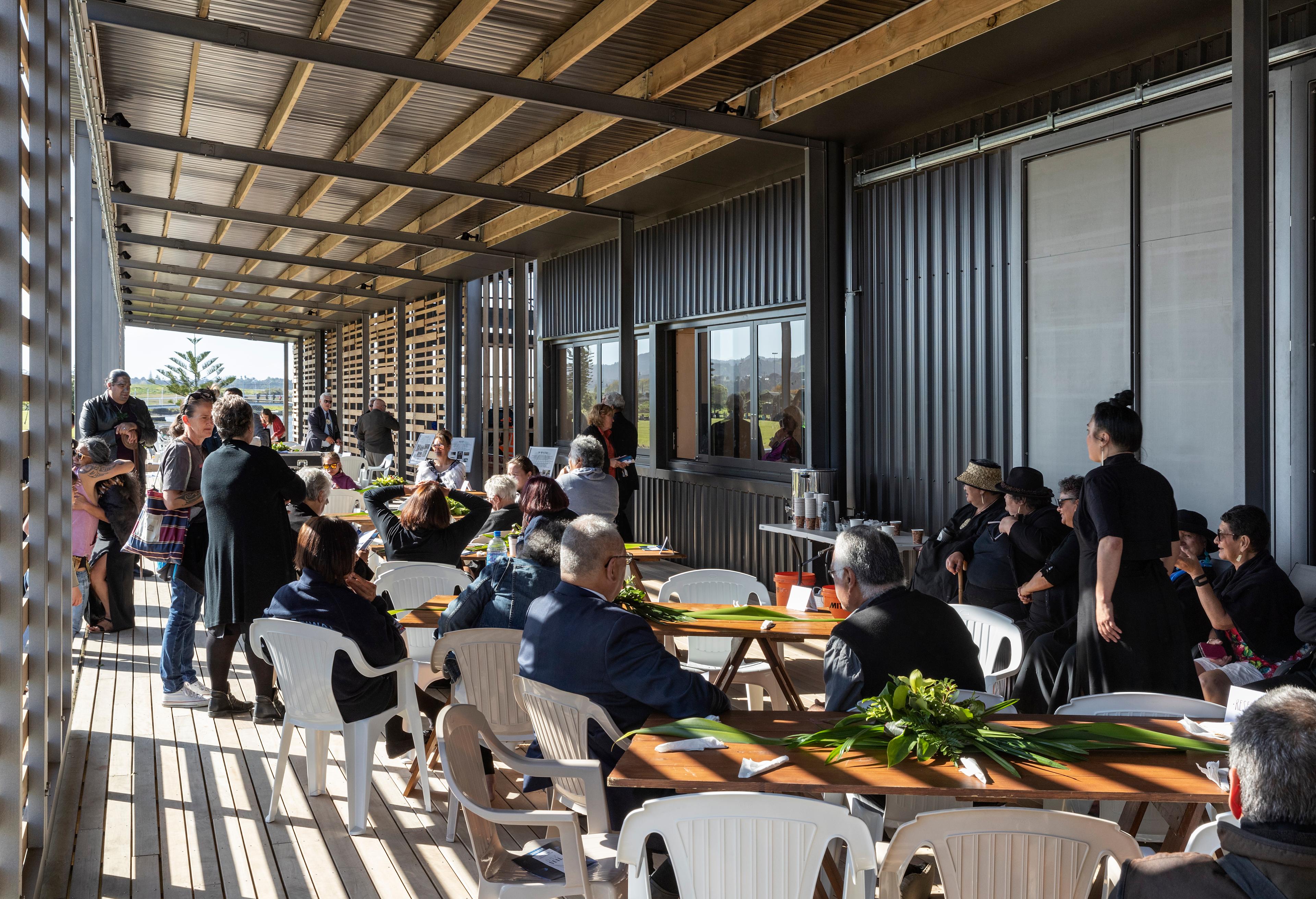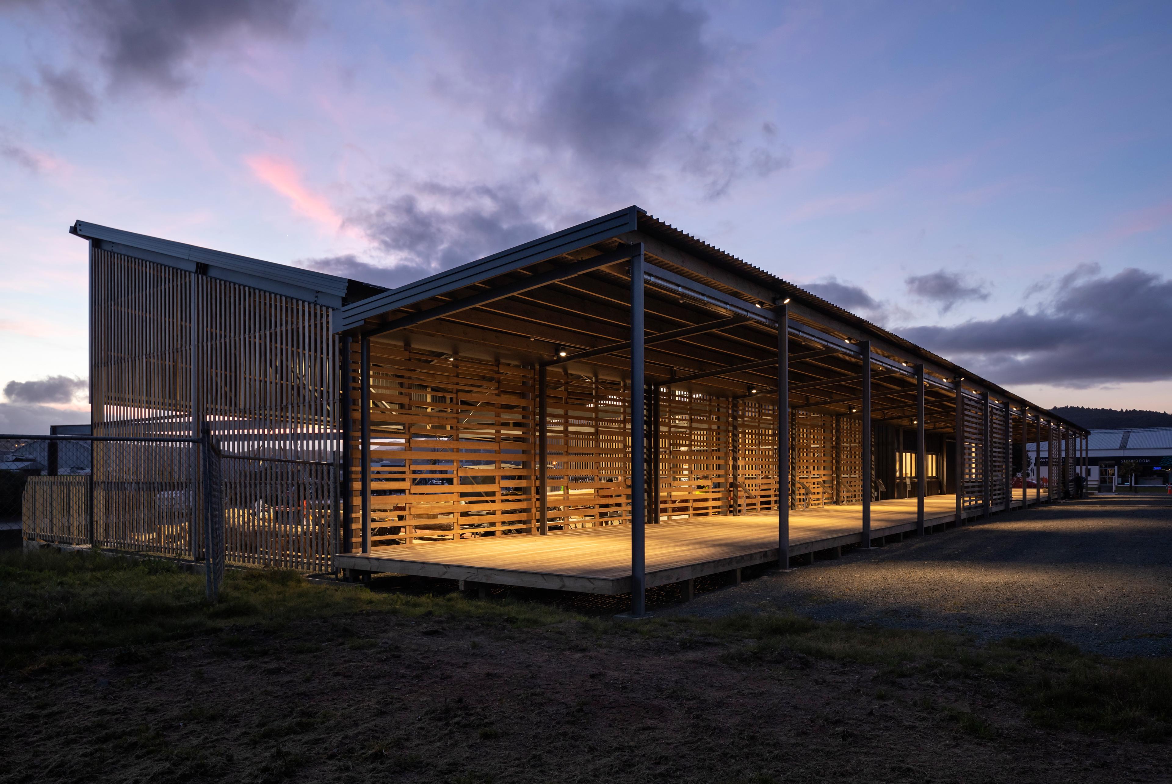 The first phase incorporates the existing boatshed on the site and transforms it into the Whare Toi to house a range of activities in furthering the traditions and craft of the Māori carving and weaving amongst other activities. A new mezzanine added to include kitchen facilities and meeting space. A laboratory space is on the ground floor. A display area allows for the display and sale of smaller items produced by the workshop. A raised floor accommodates members of the public and visiting groups to see the activities without interfering with the carving and cutting areas of the workshop.