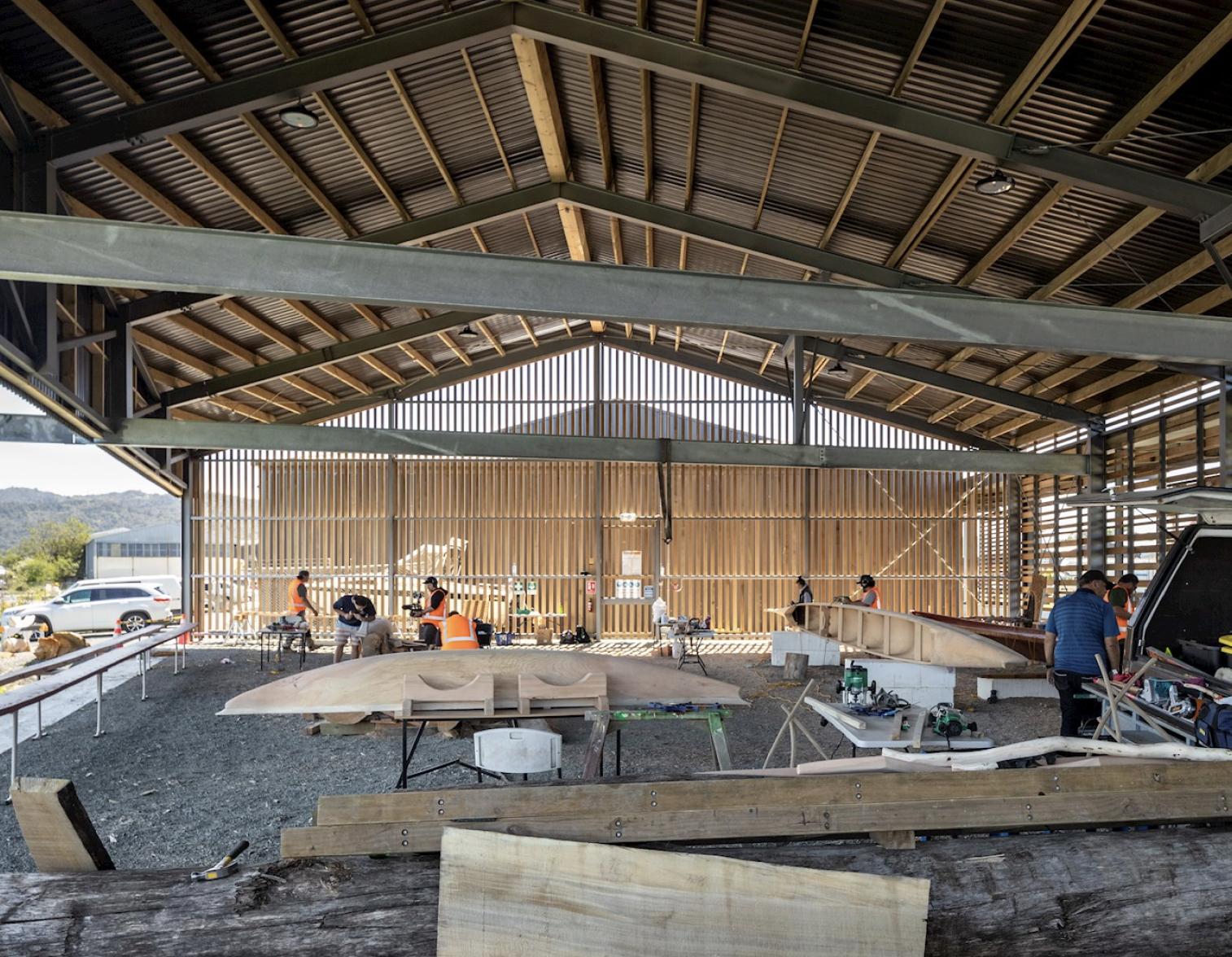 The project uses a mix of raw and finished materials to respect the existing boatshed, allow for new activities as well as relating to the rural and industrial buildings of New Zealand. The building is purposely left unfinished in some areas to reflect its heritage and history as well as its ongoing use as a working building.