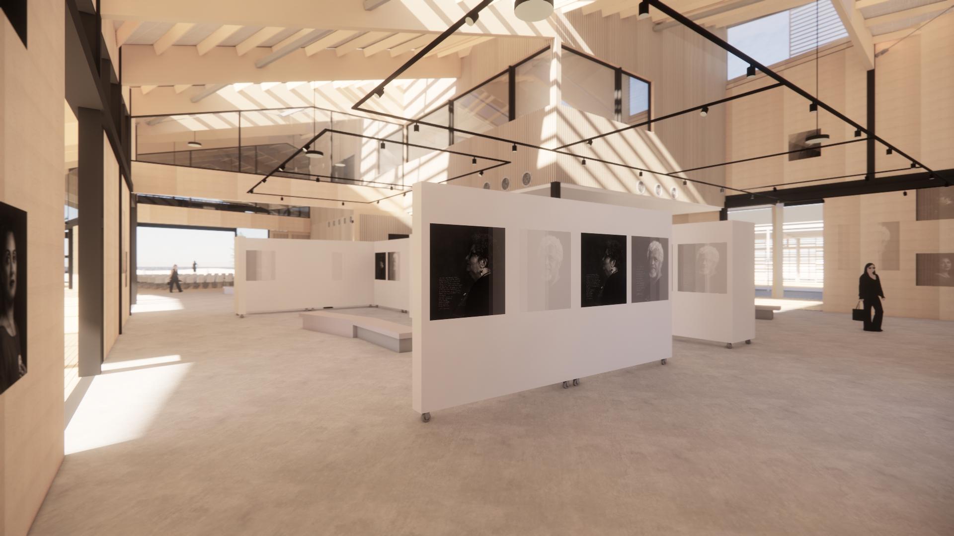 The building is clad in materials that are fit for purpose, robust and aesthetically pleasing. The roof form is clad in a profiled metal roofing with double glazed skylights and roof lights to allow light to penetrate the space at different times of the day. The walls of the Display Space are clad in recycled timber with a double-glazed curtain wall system to allow for a well-lit entry space. The Performance Space is double glazed and is highly visible and transparent to the surrounding area and wider context. The Toilet and Storage facilities are clad in recycled timber for robustness and durability with internal and external finishes to suit the proposed uses. A series of timber clad sliding doors and shutters allow for multiple access points into the building.