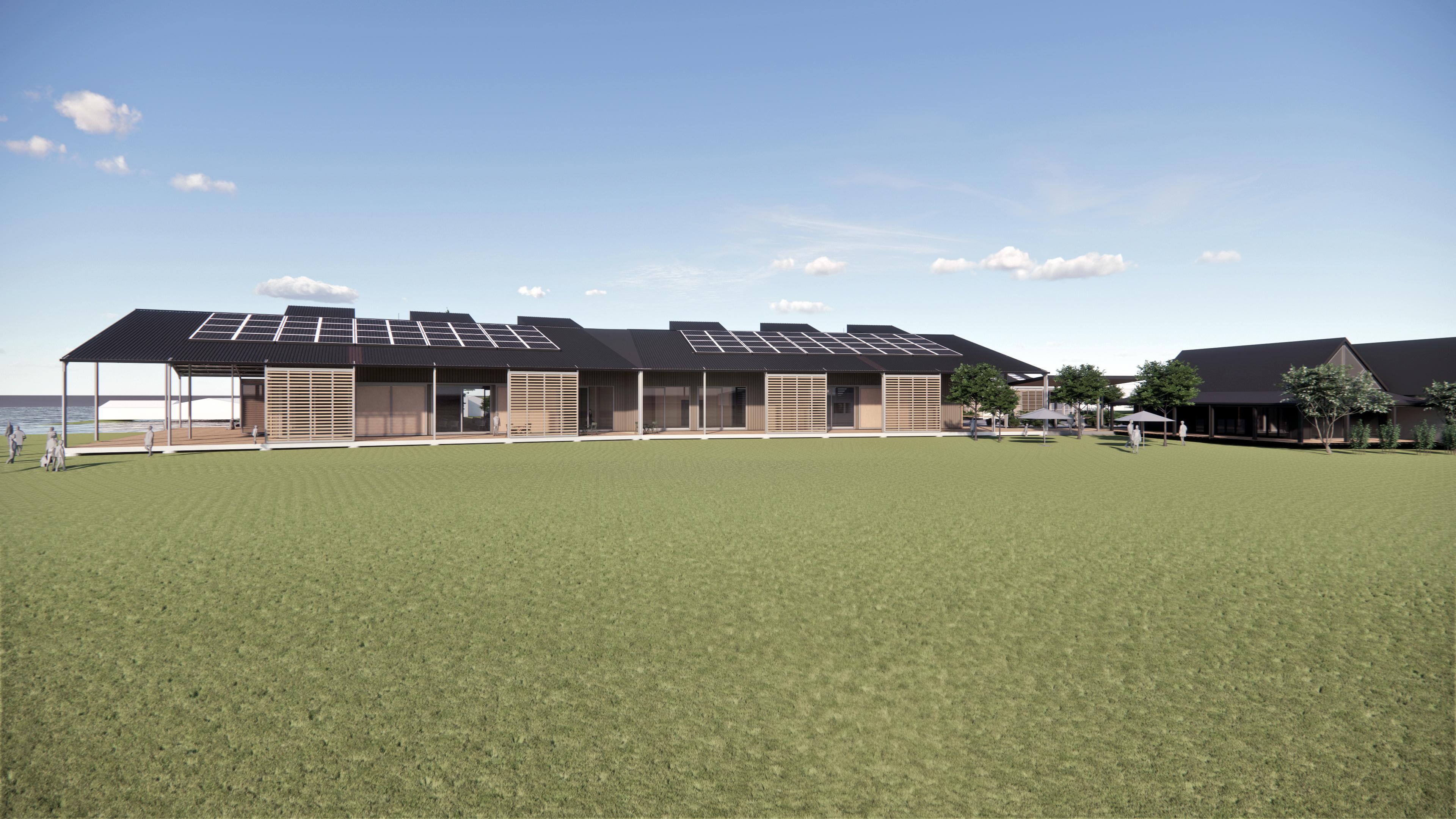 The building has a number of sustainability initiatives to reduce its carbon footprint. There are solar panels on the roof and rainwater collection with 75,000 litre tanks underground for recycling water usage within the building. With the large overhanging roof providing shade and shelter to the extensively glazed walls (to maintain visibility and connection to the wider context) it allows the building to be naturally heated and ventilated with a series of openings to encourage cross ventilation with roof vents to purge unwanted heat.