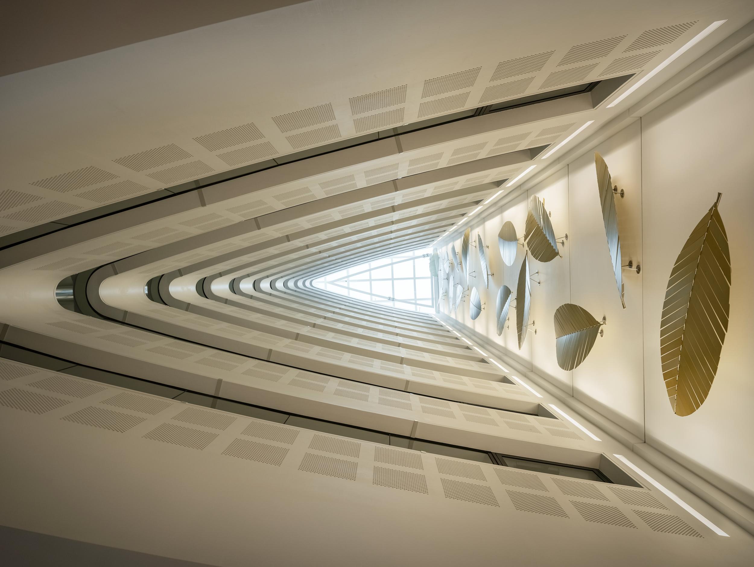 The challenging site constraints with various setbacks and height restrictions were responded for with a hotel design that responds to those constraints. Hotel rooms are arranged in a curving formation either side of an elliptically shaped atrium. Rising up between the hotel rooms, the attrium orientates the rooms to the north and south of the site while maintaining privacy and outlook from the adjoining buildings. The building is fully glazed to maximise outlook but carefully controlled with overlapping guards van windows on the south side in close proximity to the New Zealand International Convention Centre.