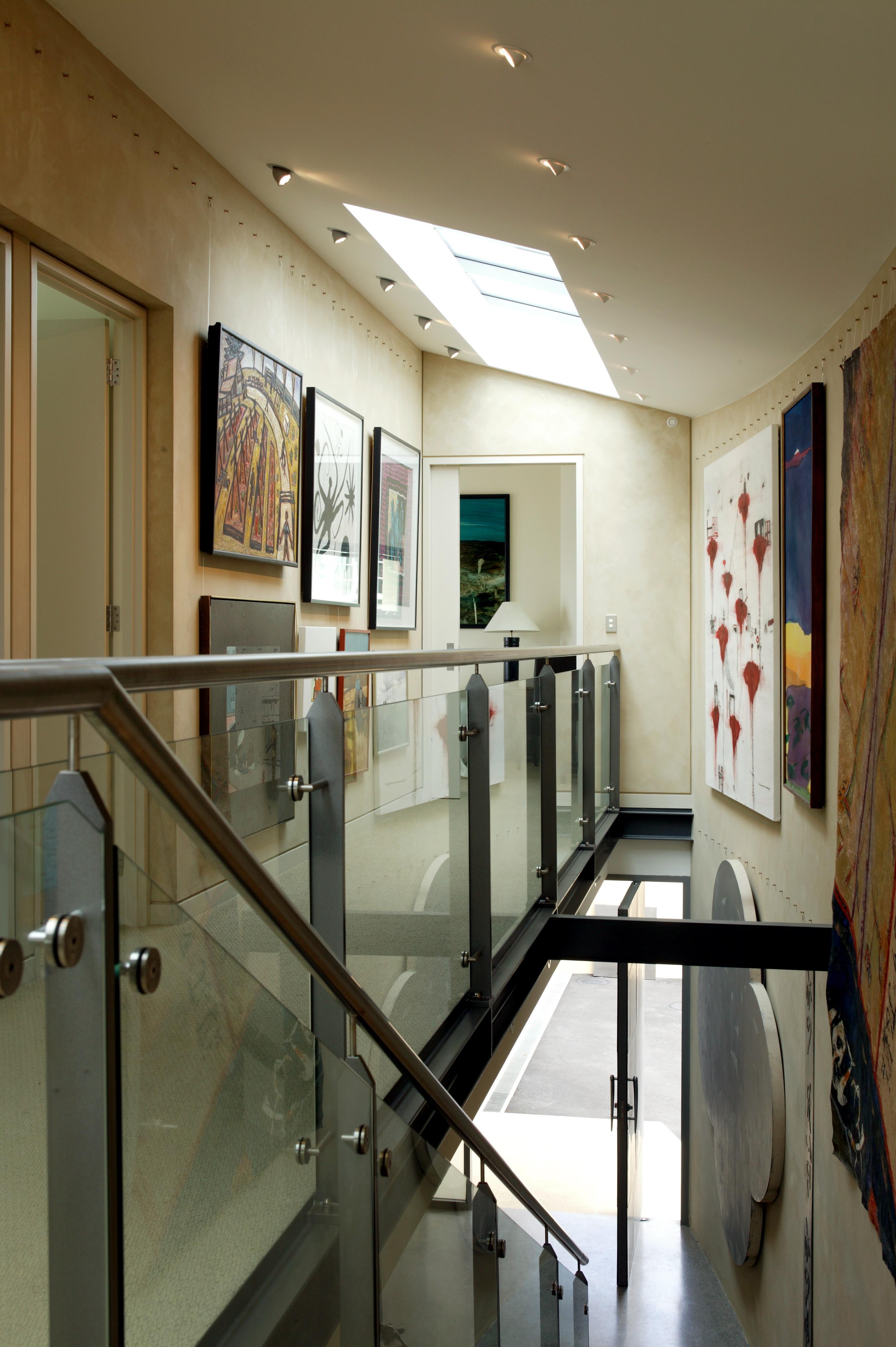 The house is located on the cliff edge between Milford Beach and Takapuna Beach. The house is designed to take in the magnificent sea views to the east towards Rangitoto Island and to the south towards St Heliers as well as providing extensive wall space for the owners changing collection of art.