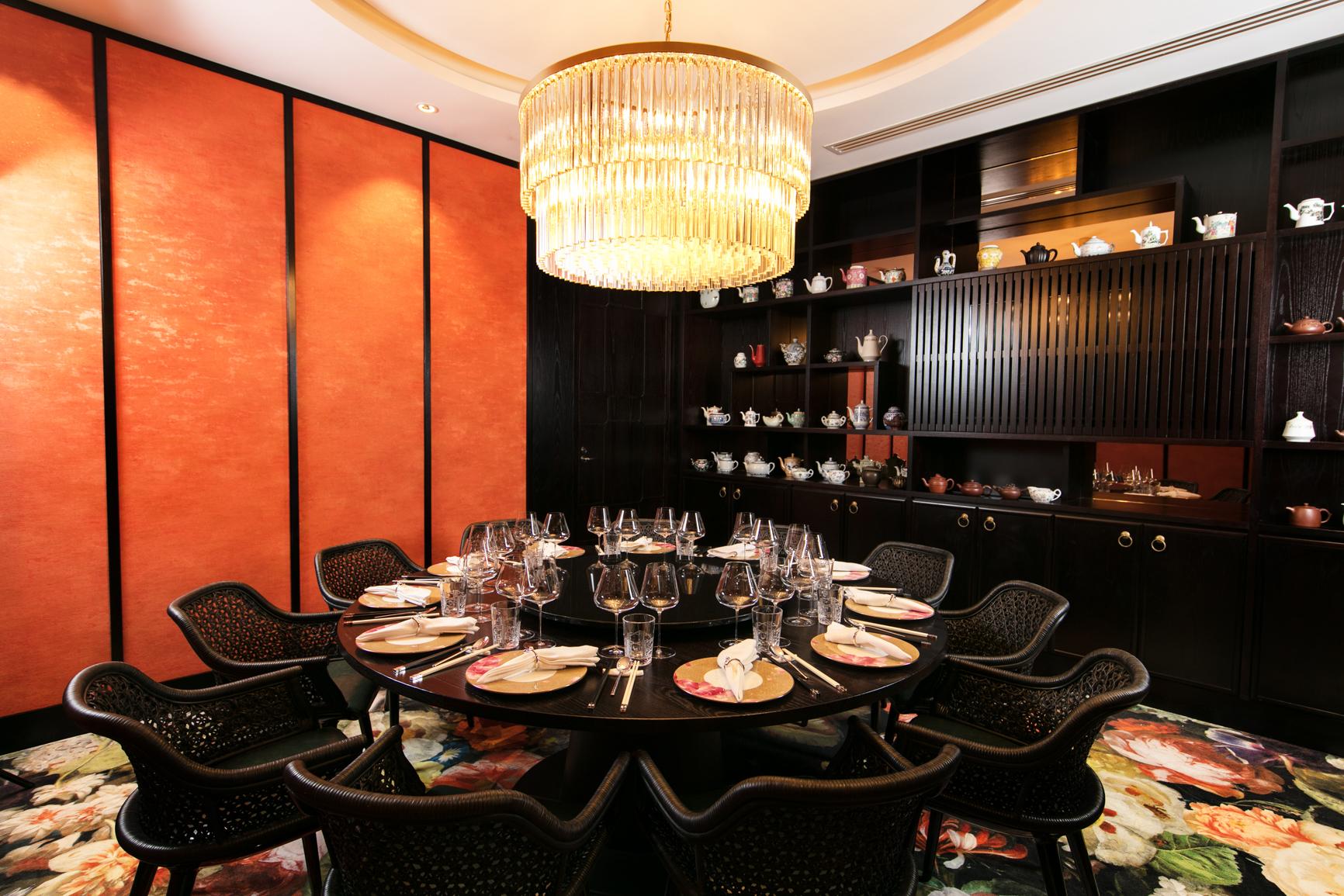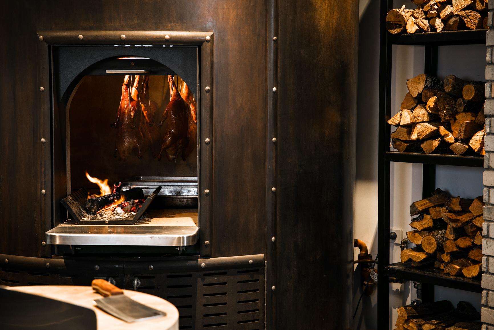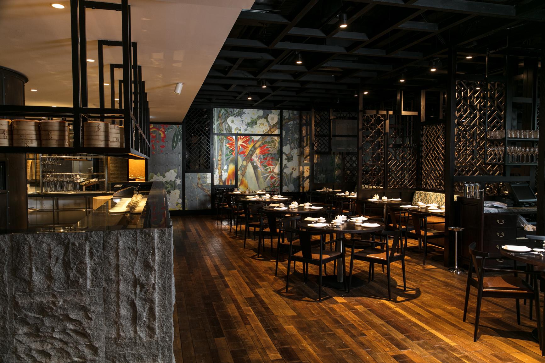 The restaurant comprises of a bar and restaurant with a Private Dining Room available. The restaurant features a spectacular open kitchen complete with a traditional Peking Duck Oven and Drying Room. The Drying Room is visible from the restaurant through an insulated glass wall.