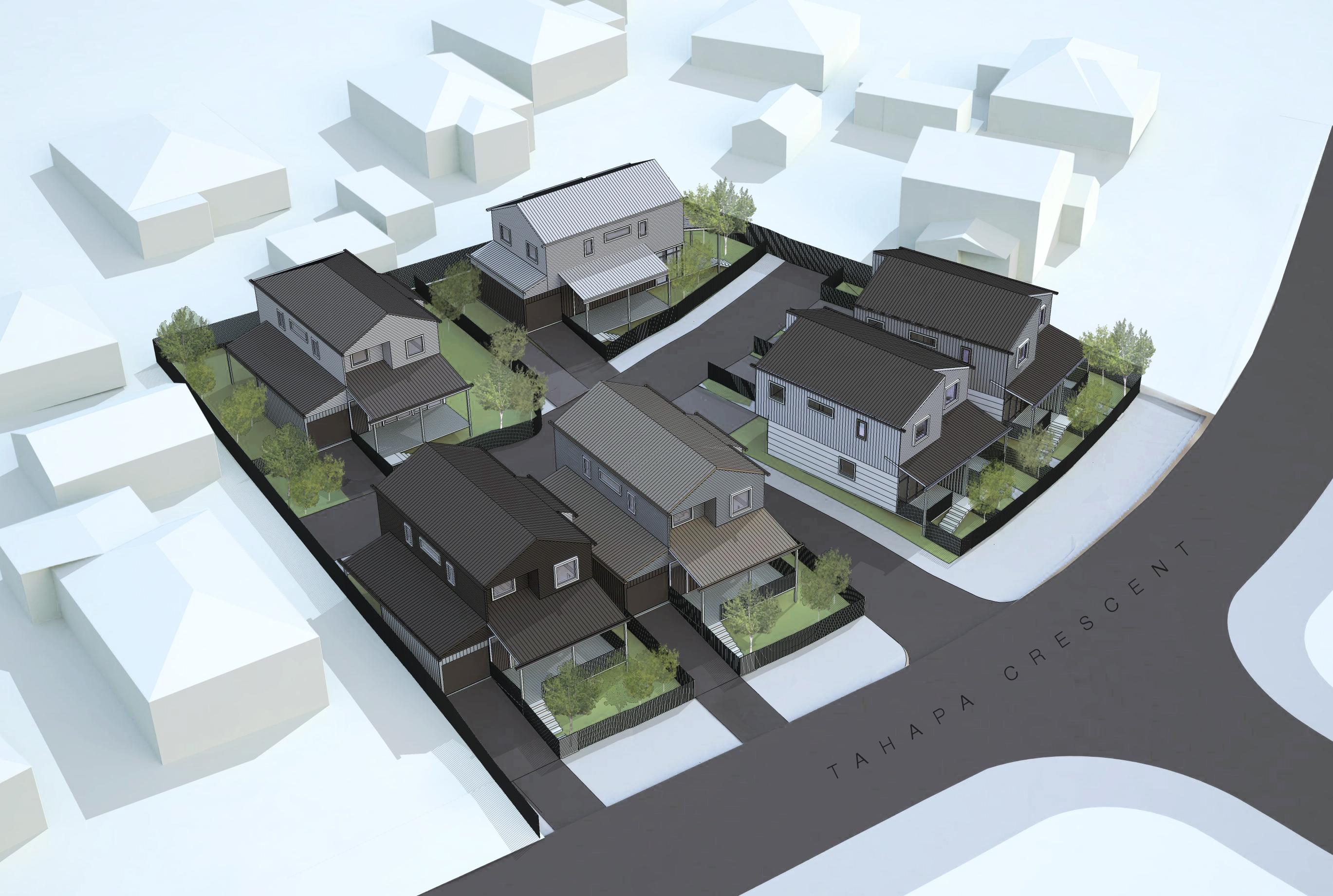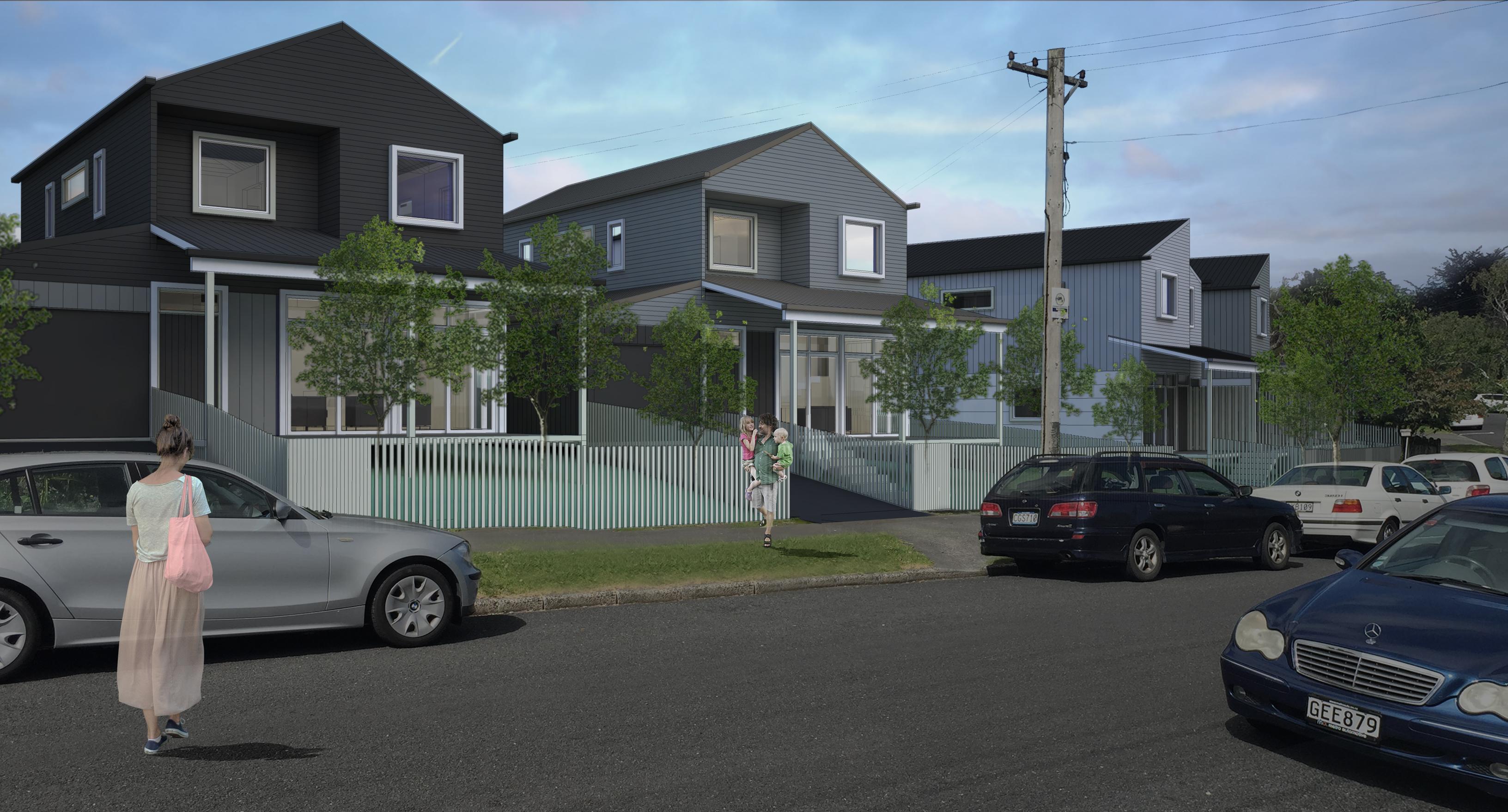 The housing project for Kainga Ora comes under the Special Housing Project area as part of Auckland Council. The project is for the redevelopment of a site which had three standalone houses. The project intensifies the use of the size with 8 houses on the site with a mix of 2 bedroom semidetached terrace houses and 4 bedroom standalone houses.