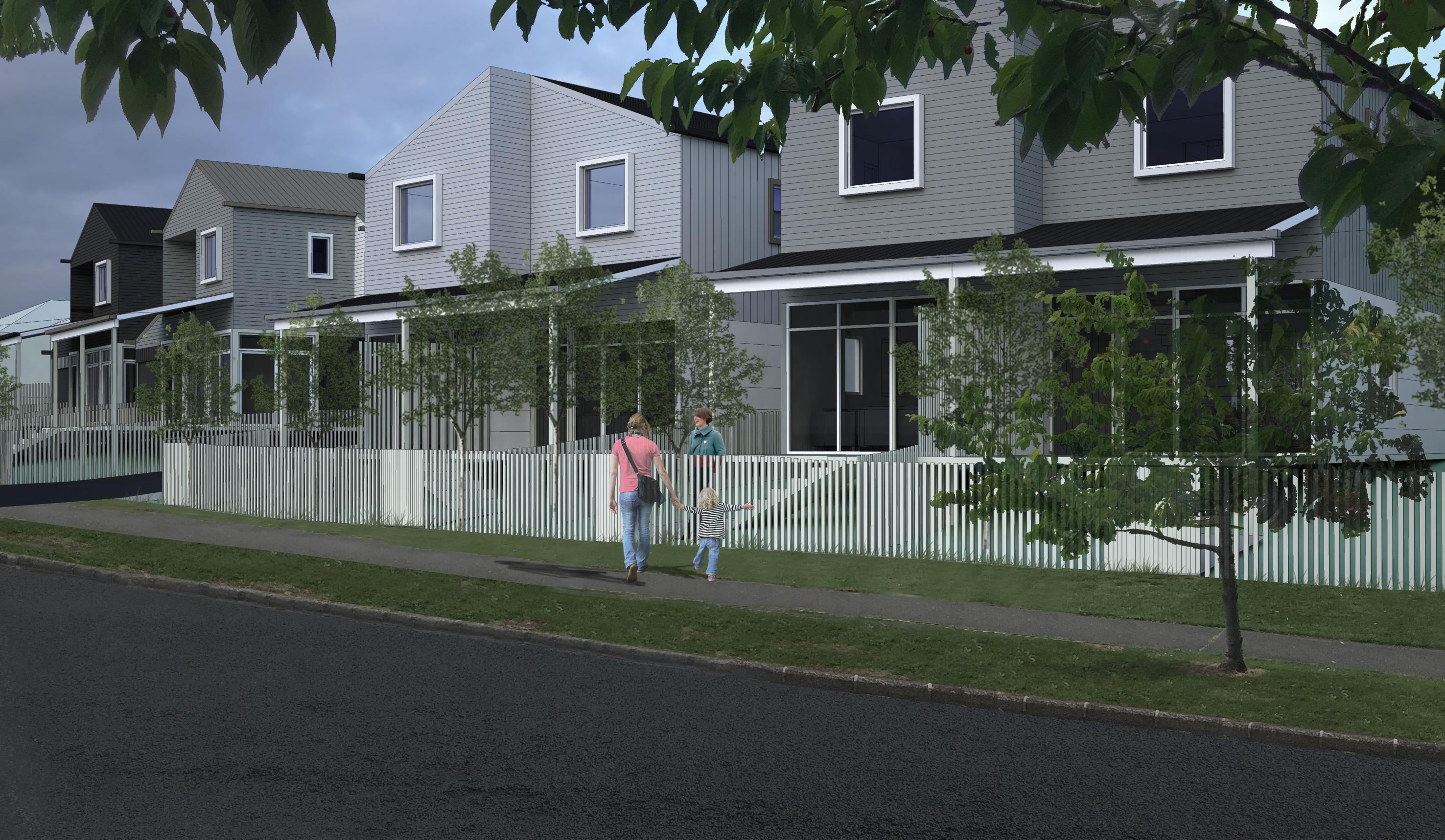 All the houses comply with the Kainga Ora Guidelines for size and spaces of the houses and the requirements for a green star rating. All houses have drive on access with a shared space for vehicle access and separate yards for safe outdoor living and playing areas.