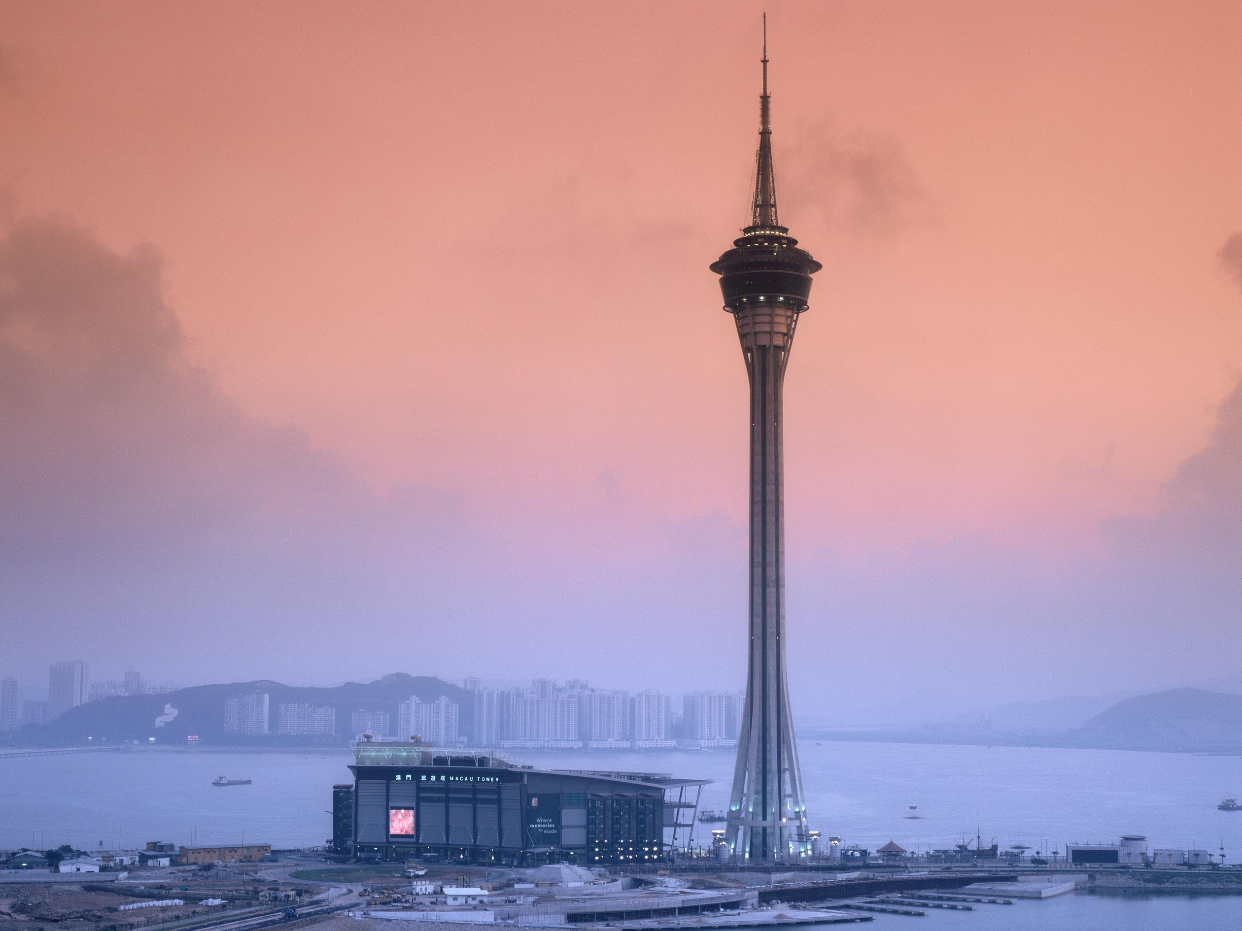 Located on a spectacular waterfront site, the 338 metre high tower, forms part of a Convention, Entertainment & Tourist Centre in the heart of Macau. The Tower consists of six public levels comprising entry and exhibition space, observation, cafés and a revolving restaurant, together with extensive provision for communication facilities. Adventure facilities such as Sky Walk and Bungy jumping are featured on the upper levels.