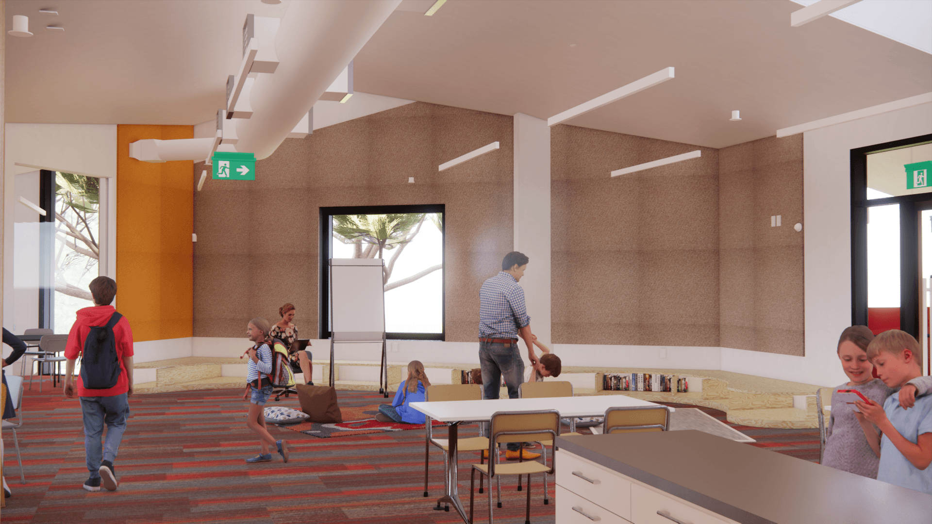 The design proposition for the new building is a two-storey development that maximises open space. Classes are clustered into two and three classroom equivalents with breakout spaces for each classroom cluster following MoE guidelines for innovative learning environments. There are associated art and kitchen facilities for each of these teaching spaces, accessible from both inside and out.
