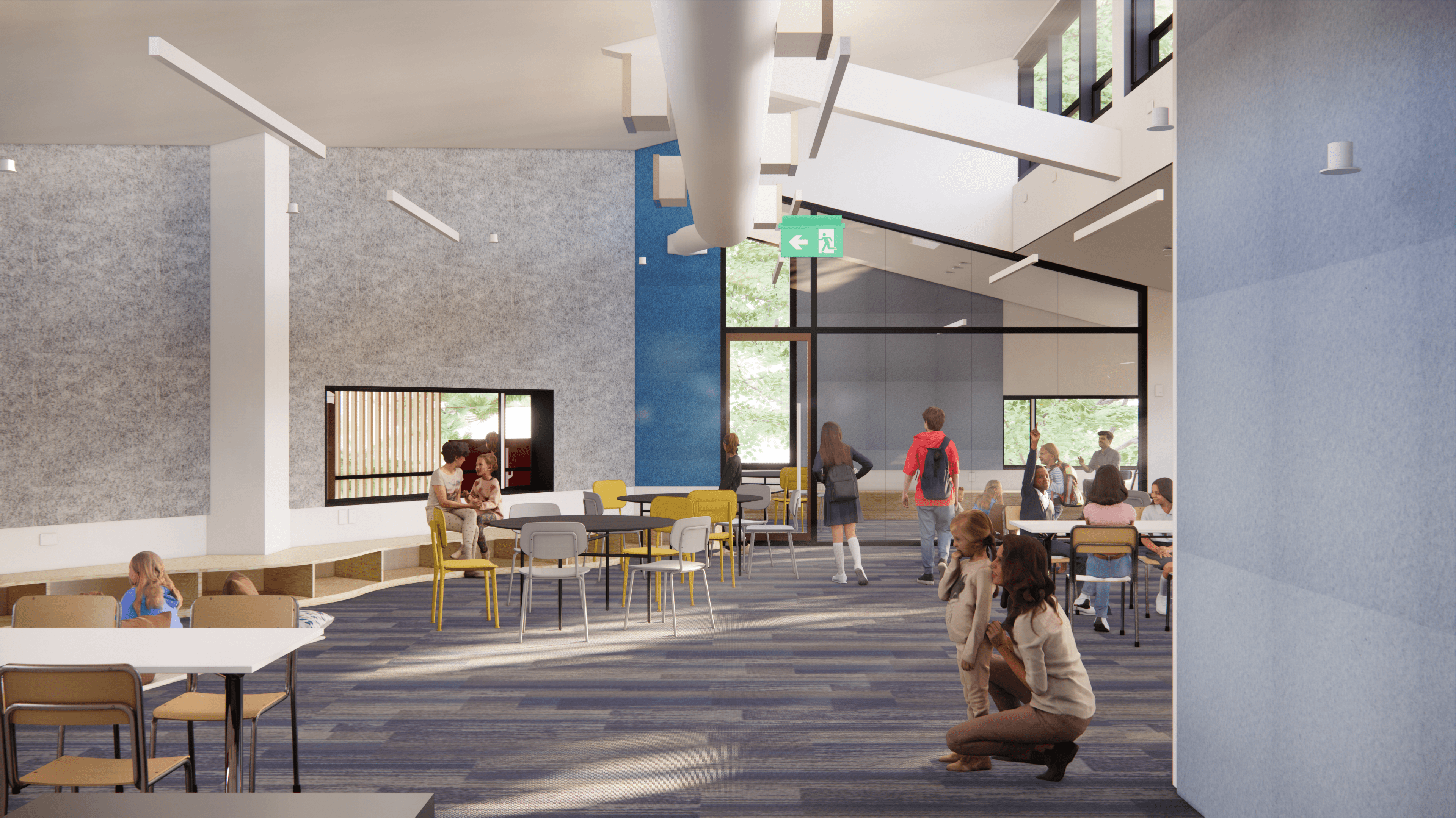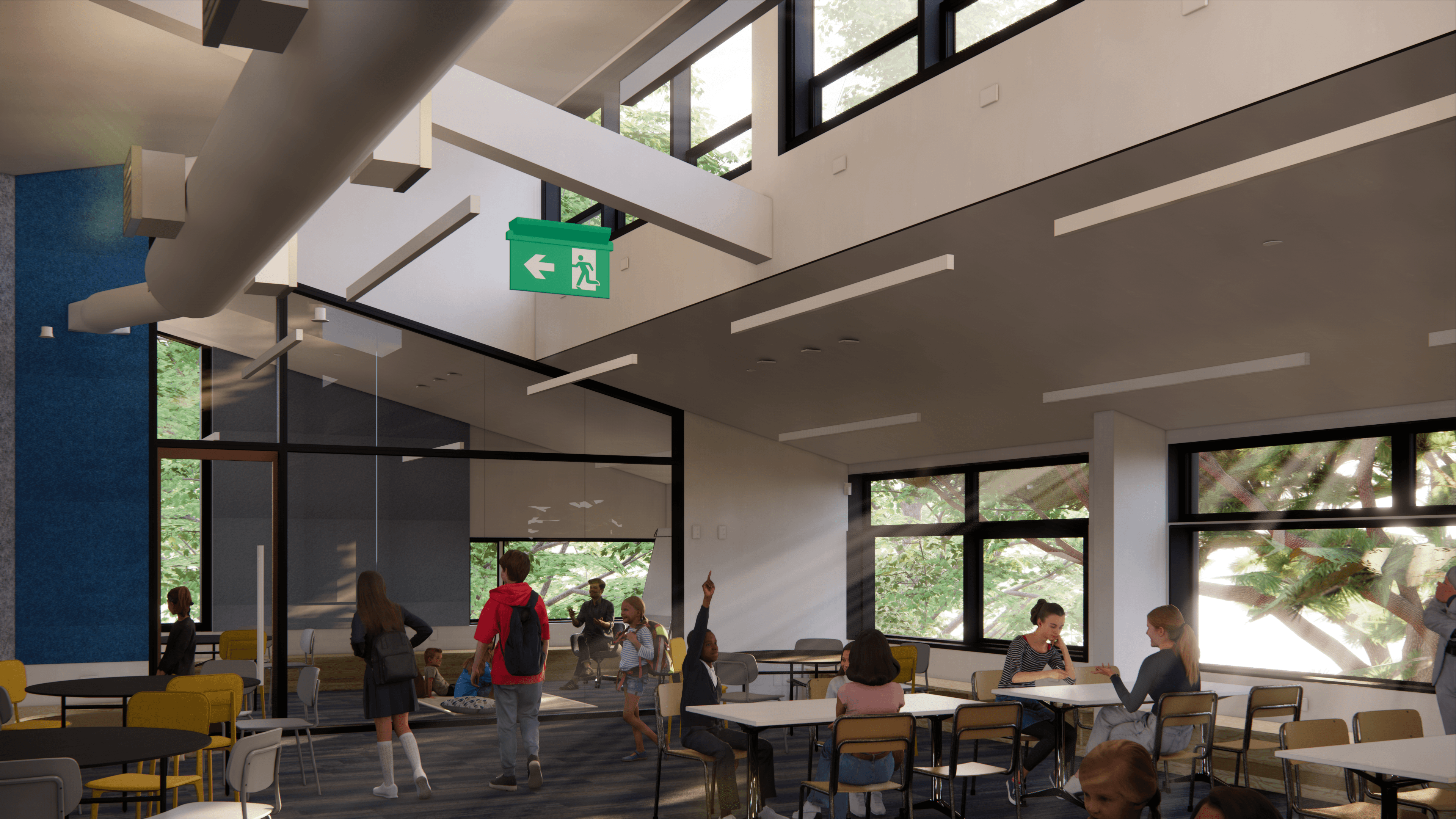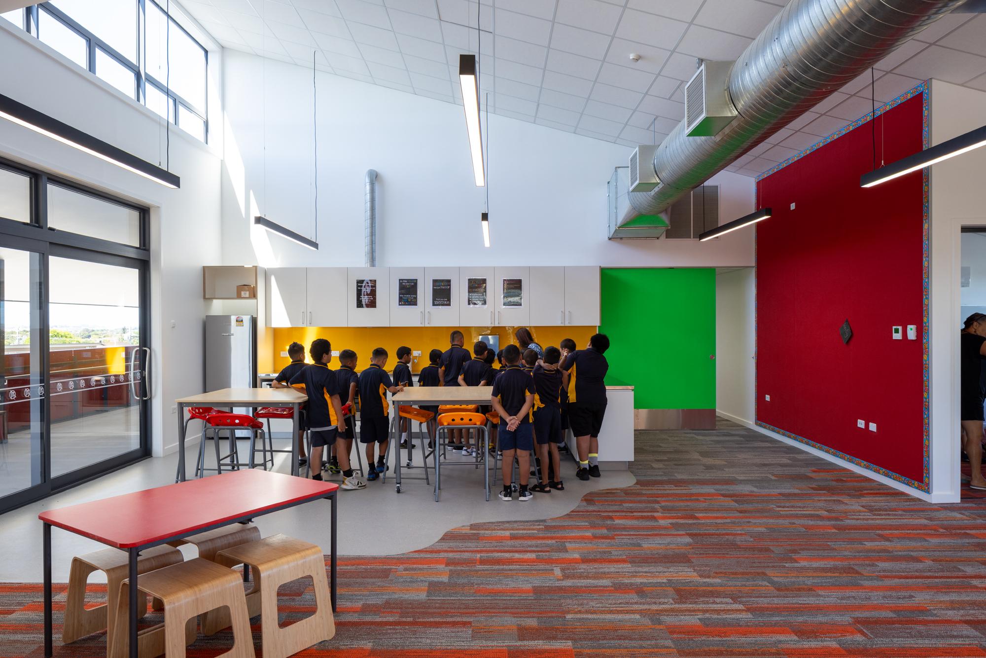 The building is clad in a mixture of brick veneer and profiled metal cladding to respond contextually to the existing school buildings and align with MoE guidelines.