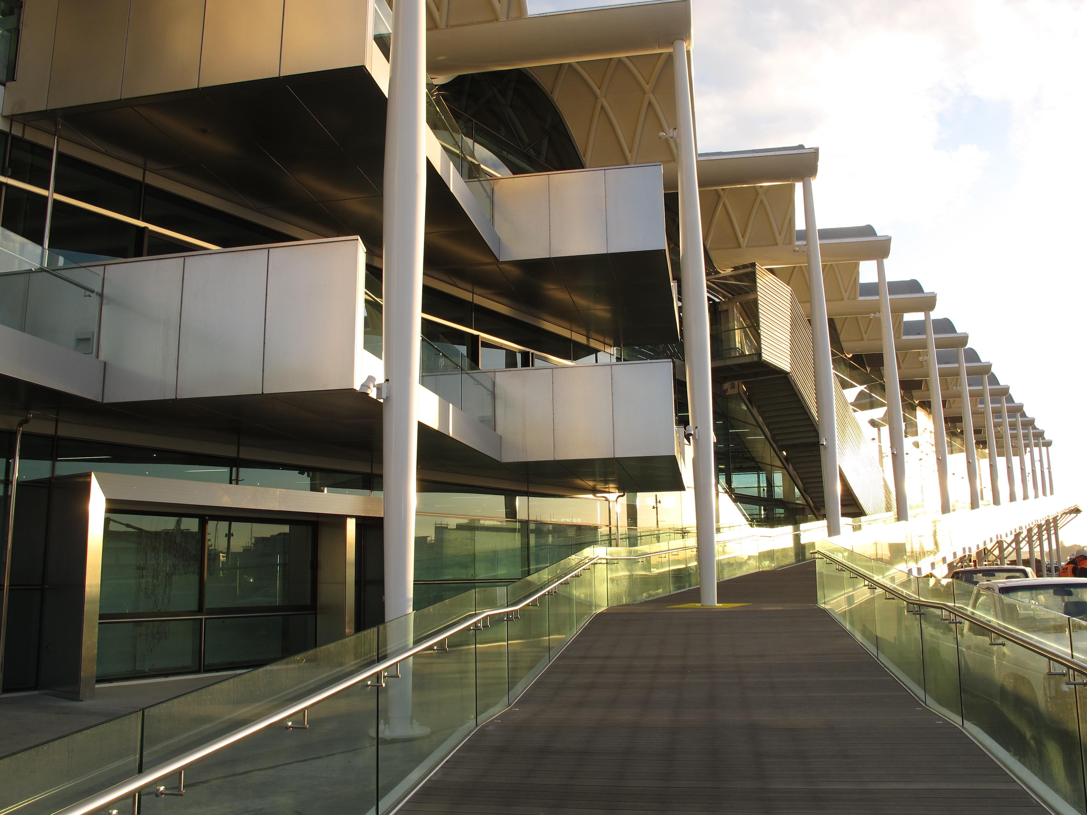 The building is designed to suit major single events, or simultaneous multiple events and the ground floor spaces have large sliding doors onto the adjacent wharf and the upper levels enjoy balconies off all rooms for dramatic views. A public viewing deck is a feature of the building, with an extended ramp accessible to all, leading to a generous deck for viewing waterfront activity.