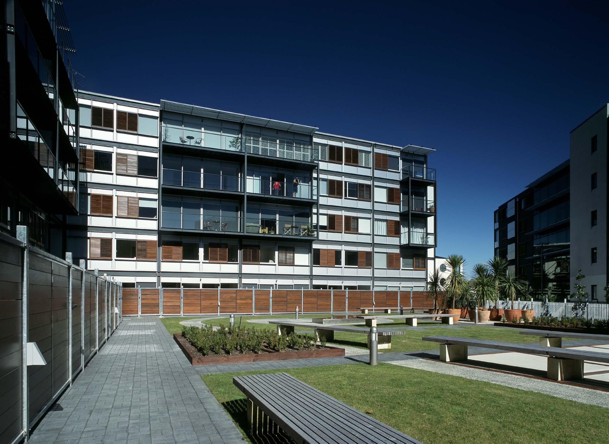 Viaduct Point Apartments occupy a key site fronting onto Pakenham Street and Customs Street West. The design provides 78 apartments of various sizes and types over five levels ranging from studio apartments to two-bedroom duplex, respecting and developing the Auckland City Council's planning and environment guidelines.